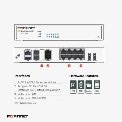 Fortinet FortiGate 81F Aplicativo de segurança de rede / firewall -FG-81F 10 Porta - 1000Base-T, 1000Base-X - Gigabit Ethernet 4