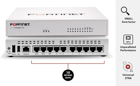Firewall FortiGate-70F FG-70F - 7 portas internas GE RJ45, 2 portas WAN GE RJ45 (apenas para aparelhos, sem assinatura)